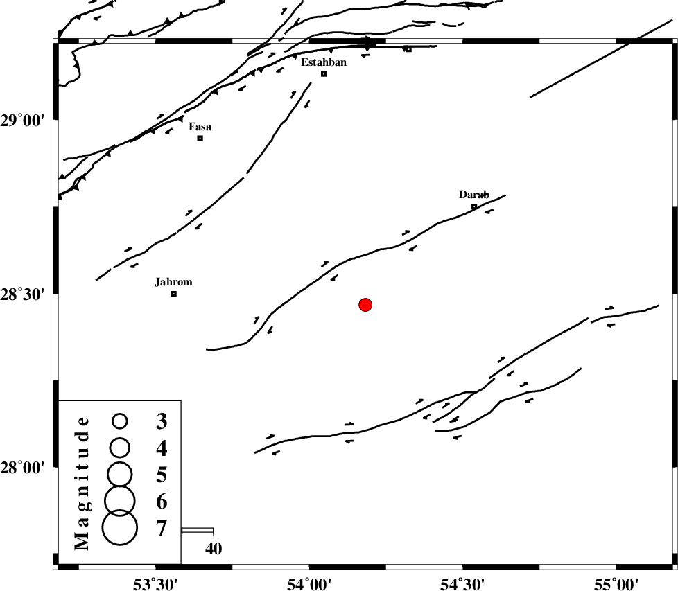 BAKHTEGAN_F (Length: 94 km) , Distance to epicenter: 38 km | |