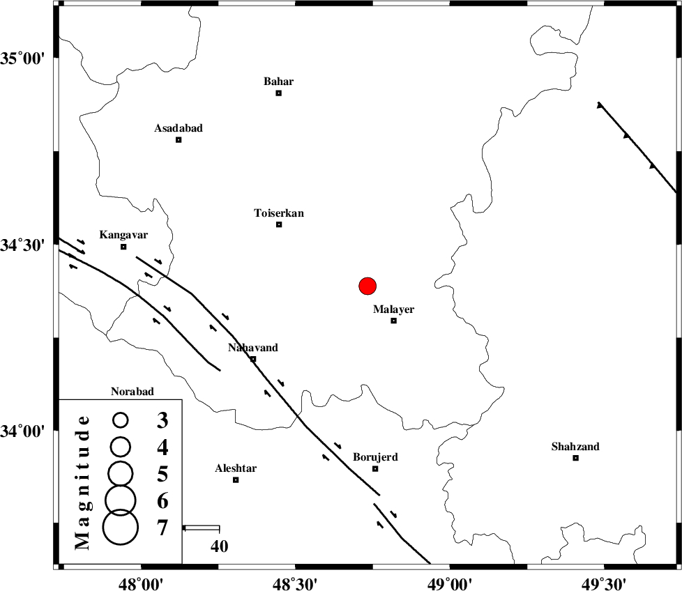 NAHAVAND_F (Length: 102 km) , Distance to epicenter: 41 km | |