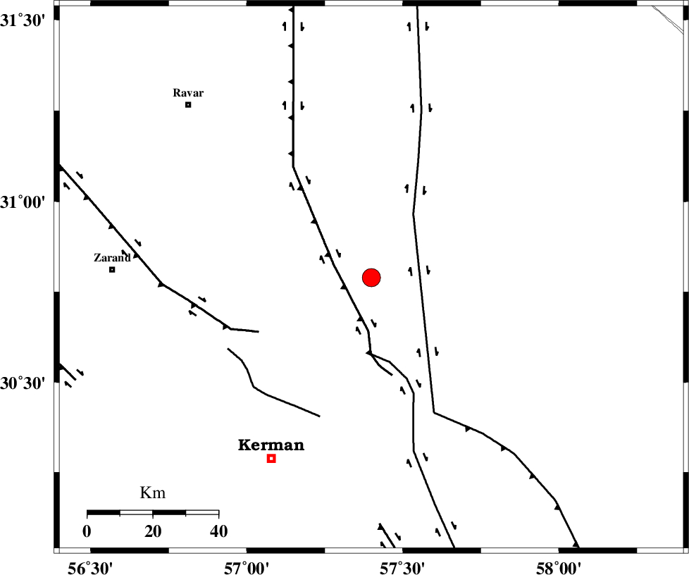 GOLBAF_SIRCH_F (Length: 114 km) , Distance to epicenter: 23 km | |