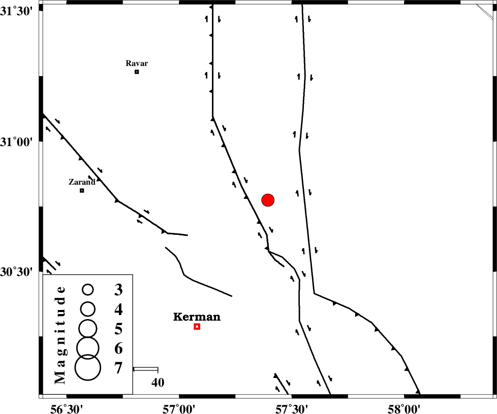 GOLBAF_SIRCH_F (Length: 114 km) , Distance to epicenter: 22 km | |