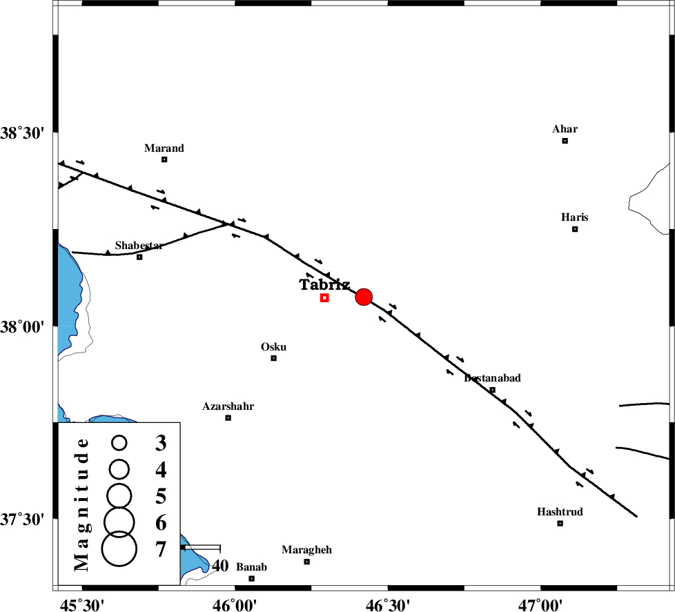 | N_TABRIZ_F2 (Length: 52 km) , Distance to epicenter: 44 km | |