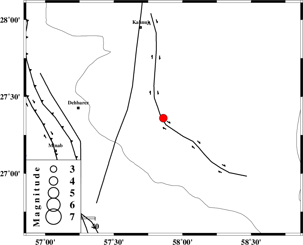ZENDAN_MINAB_F_Z1 (Length: 183 km) , Distance to epicenter: 62 km | |