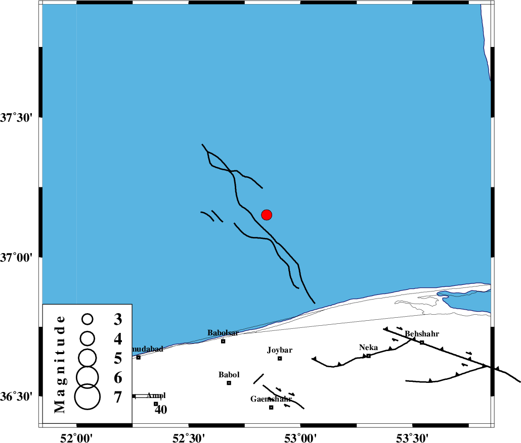 KHAZAR_F (Length: 523 km) , Distance to epicenter: 70 km | |