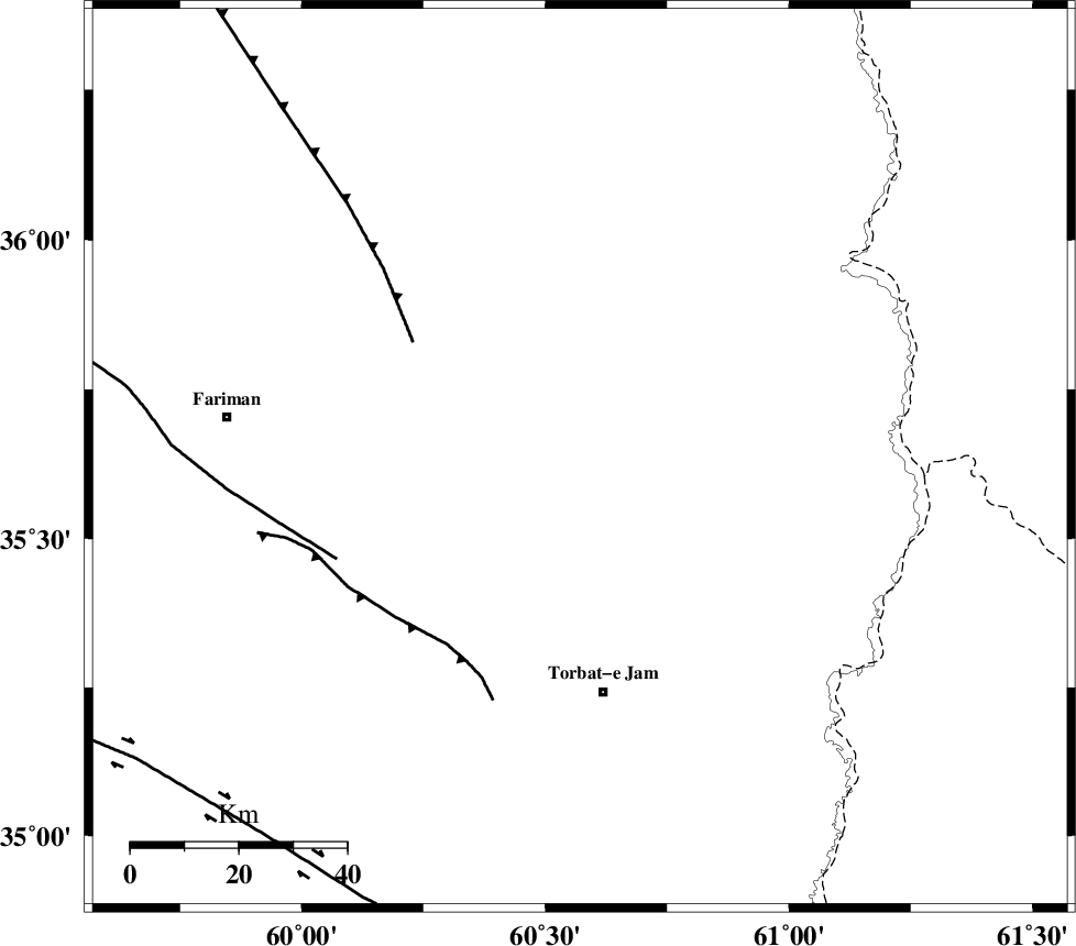 TORBAT_E_JAM_F2 (Length: 57 km) , Distance to epicenter: 43 km | |