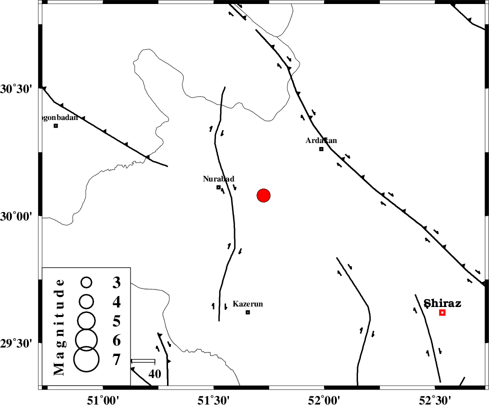 | KAZERUN_F (Length: 96 km) , Distance to epicenter: 14 km | |