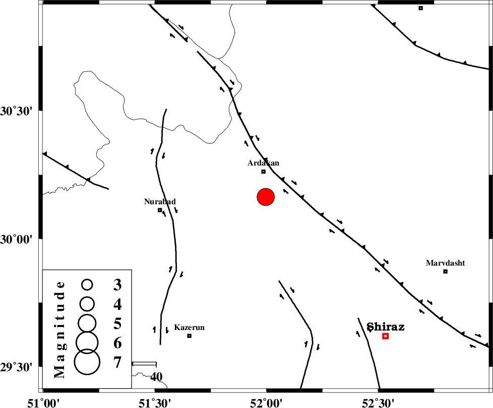 | KAZERUN_F (Length: 96 km) , Distance to epicenter: 41 km | |
