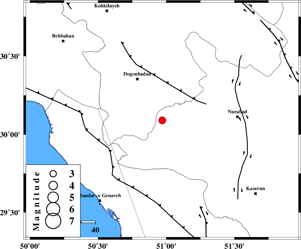 KAZERUN_F (Length: 96 km) , Distance to epicenter: 55 km