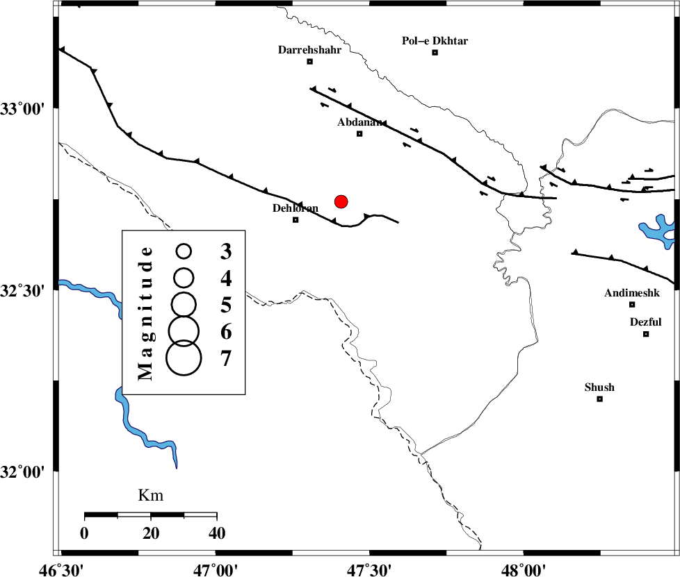 DEZFUL_EMBAYMENT (Length: 228 km) , Distance to epicenter: 63 km | |