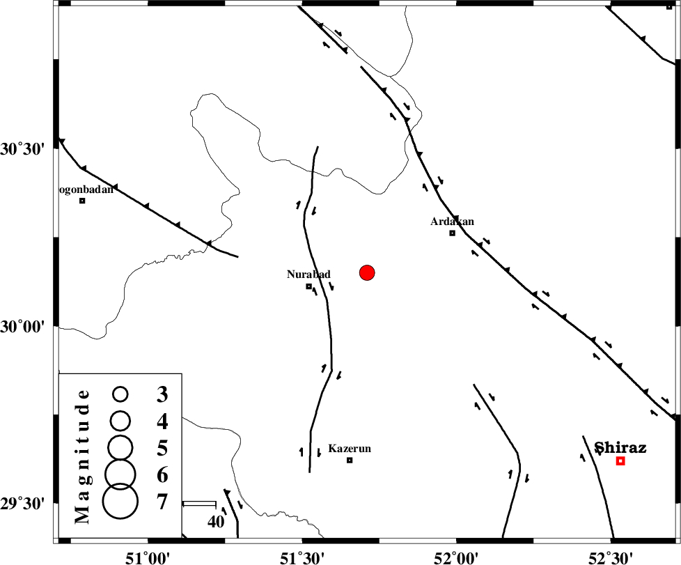 KAZERUN_F (Length: 96 km) , Distance to epicenter: 15 km | |