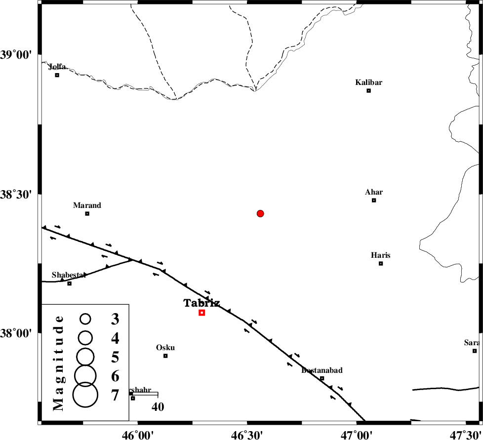 N_TABRIZ_F1 (Length: 222 km) , Distance to epicenter: 41 km | |