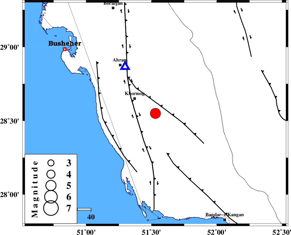 BORAZJAN_F (Length: 168 km) , Distance to epicenter: 14 km | |