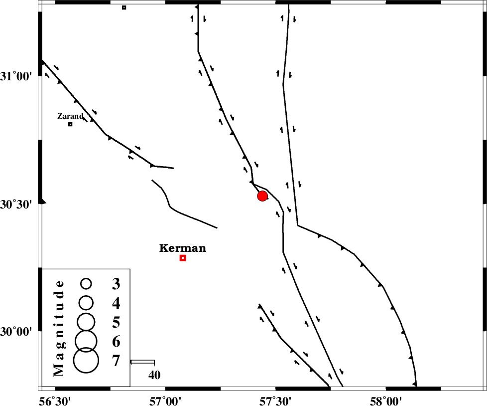 GOLBAF_SIRCH_F (Length: 114 km) , Distance to epicenter: 3 km | |