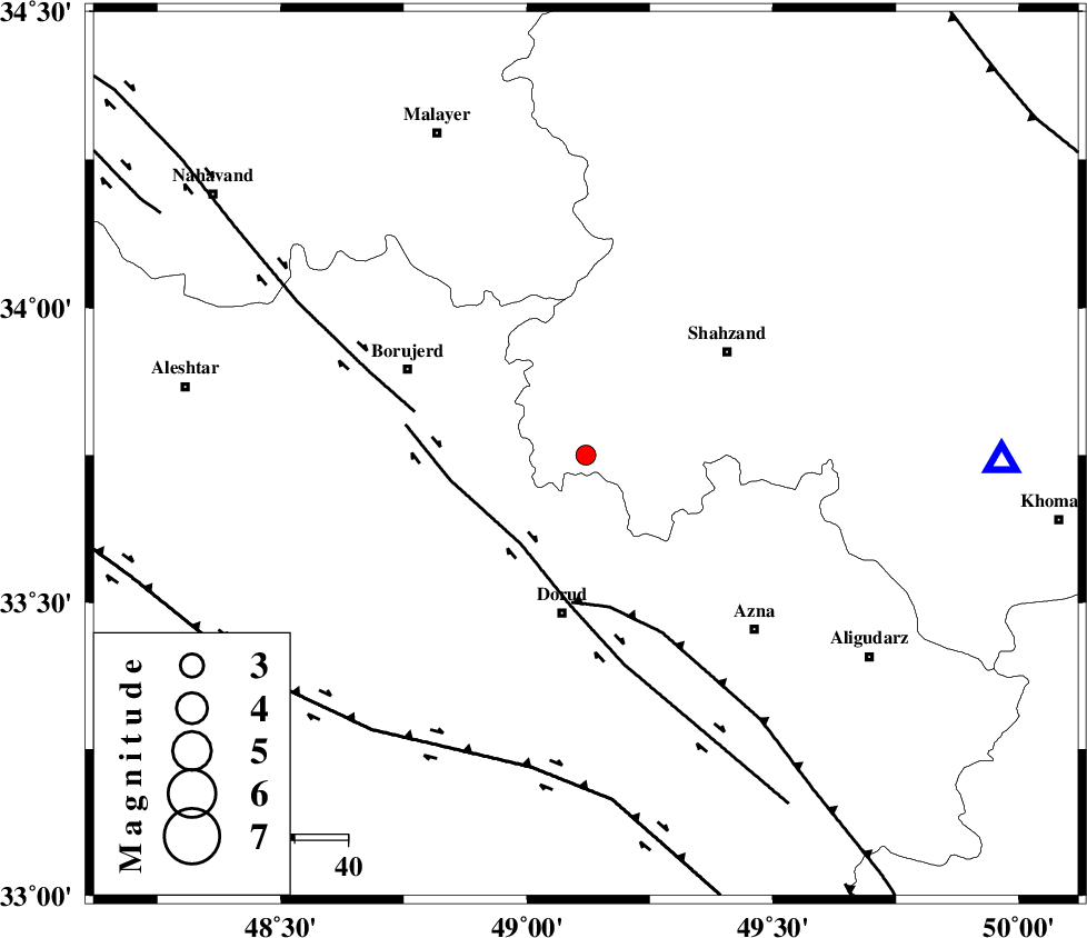 NAHAVAND_F (Length: 102 km) , Distance to epicenter: 33 km | |