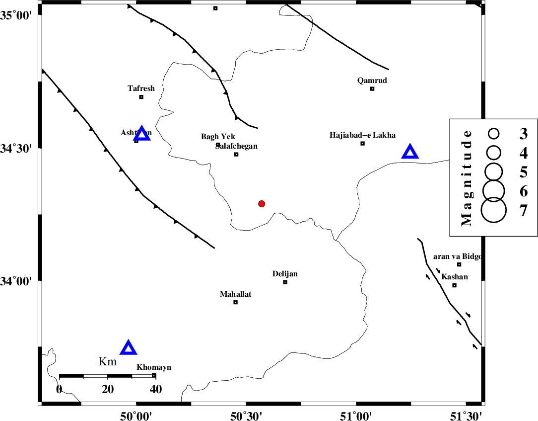 KASHAN_F (Length: 44 km) , Distance to epicenter: 67 km | |