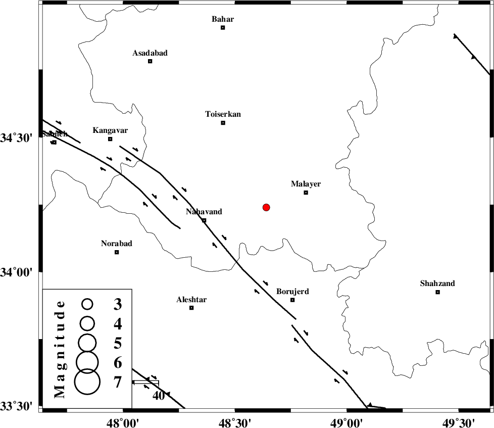 NAHAVAND_F (Length: 102 km) , Distance to epicenter: 24 km | |