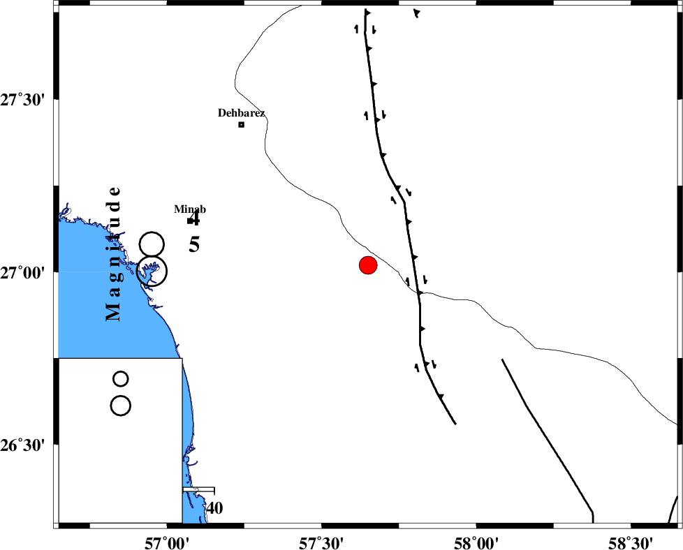ZENDAN_MINAB_F_Z1 (Length: 183 km) , Distance to epicenter: 39 km | |