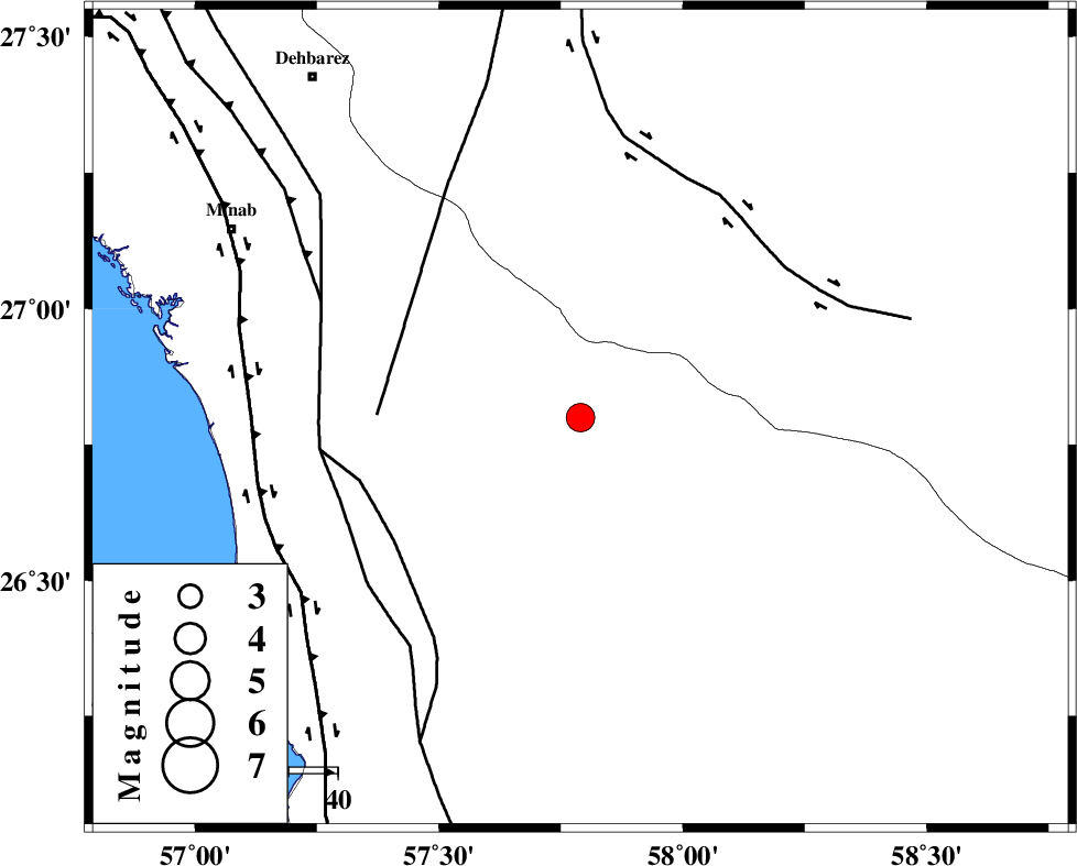 ZENDAN_MINAB_F_Z2 (Length: 63 km) , Distance to epicenter: 46 km | |