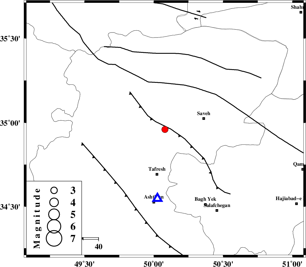 TAFRESH_F (Length: 117 km) , Distance to epicenter: 48 km | |