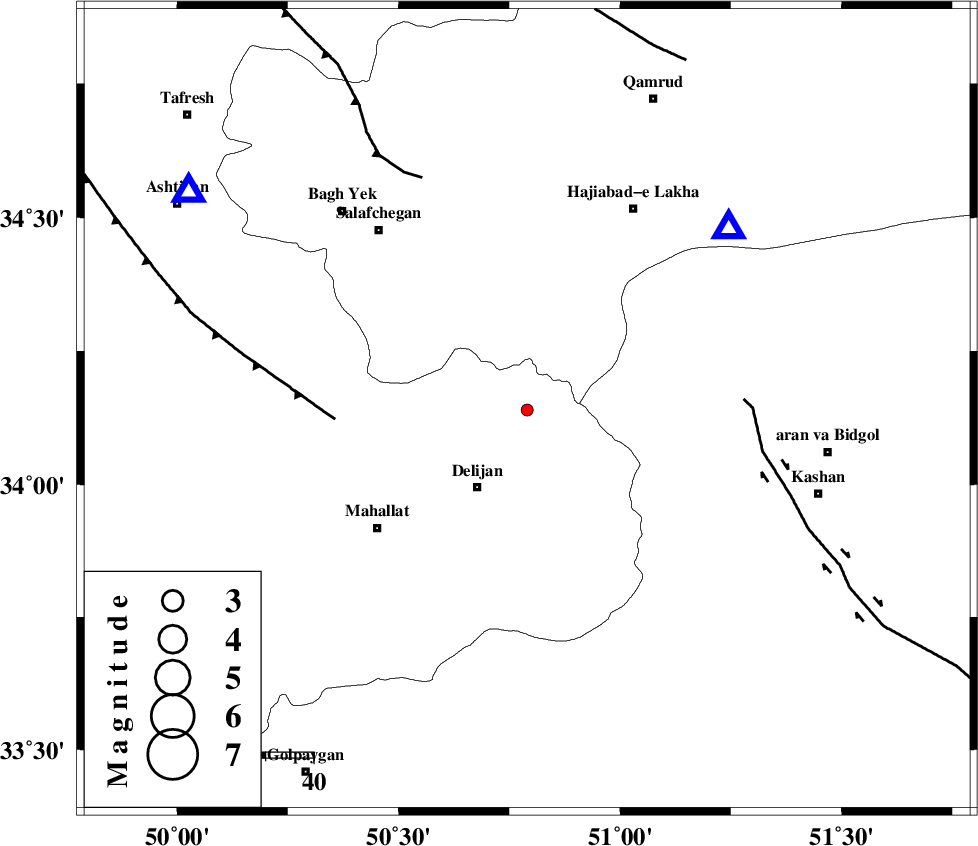 TAFRESH_F (Length: 117 km) , Distance to epicenter: 40 km | |