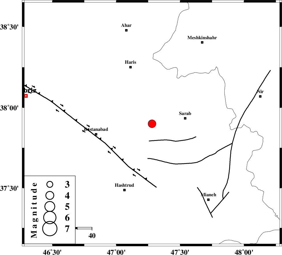 N_TABRIZ_F1 (Length: 222 km) , Distance to epicenter: 34 km | |