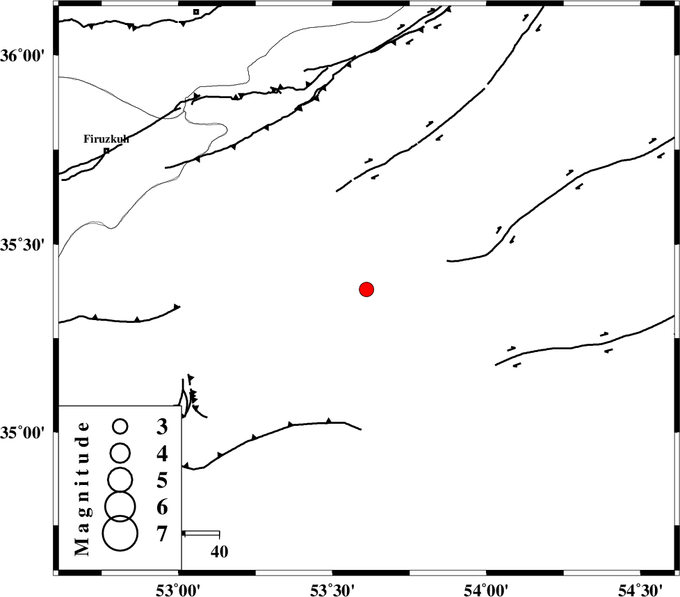 KUH_E_GUGERD_F (Length: 73 km) , Distance to epicenter: 40 km | |