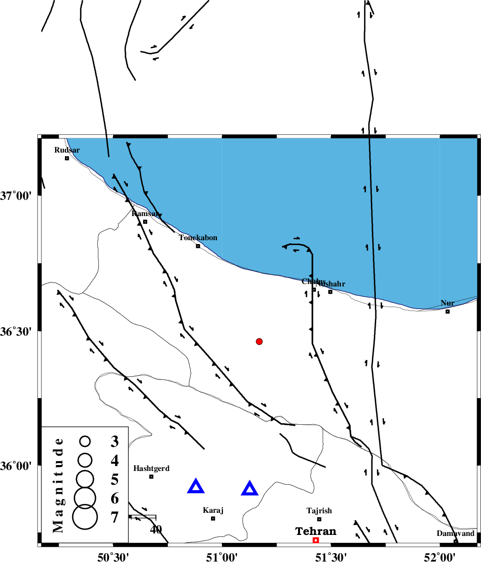 N_ALBORZ_F (Length: 360 km) , Distance to epicenter: 18 km | |