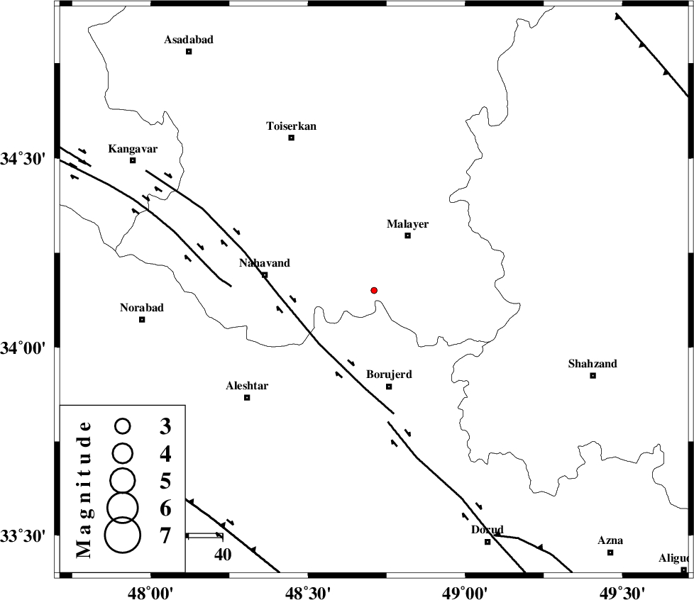 NAHAVAND_F (Length: 102 km) , Distance to epicenter: 22 km | |