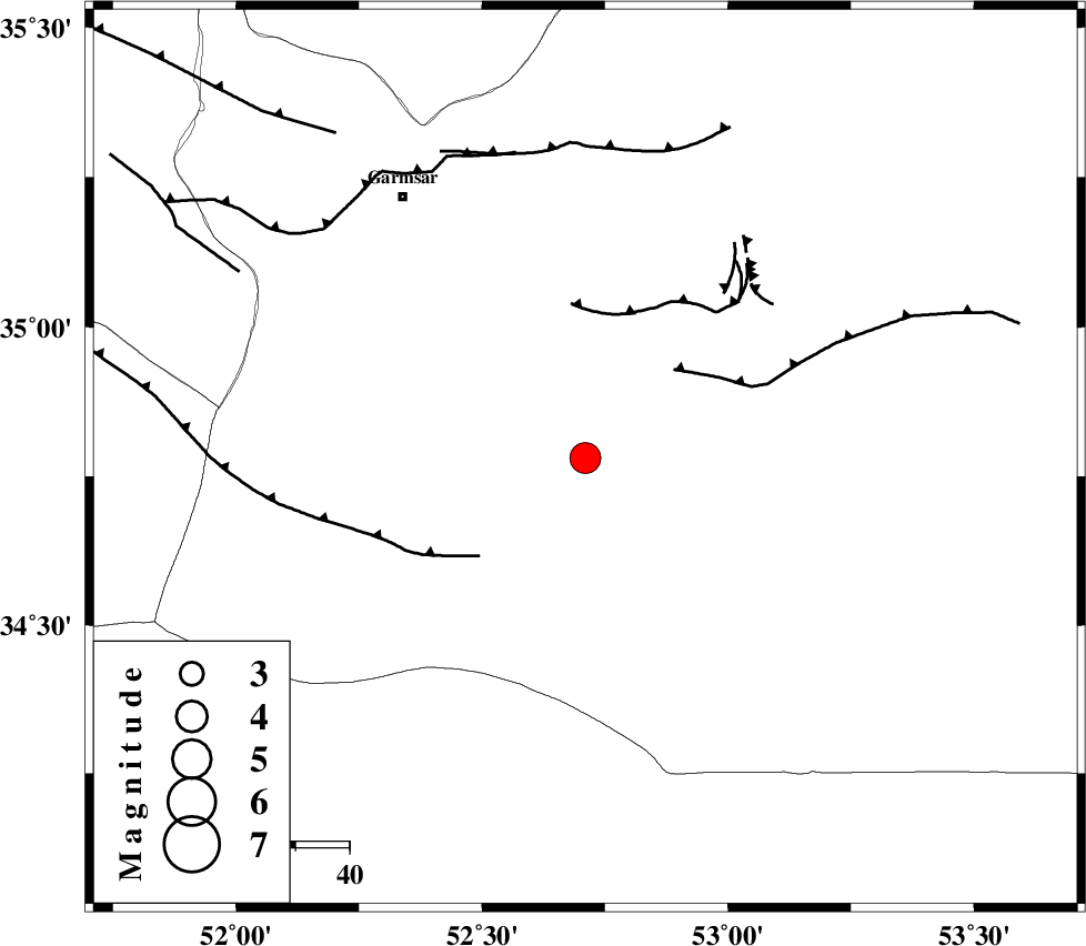 KUH_E_GUGERD_F (Length: 73 km) , Distance to epicenter: 23 km | |