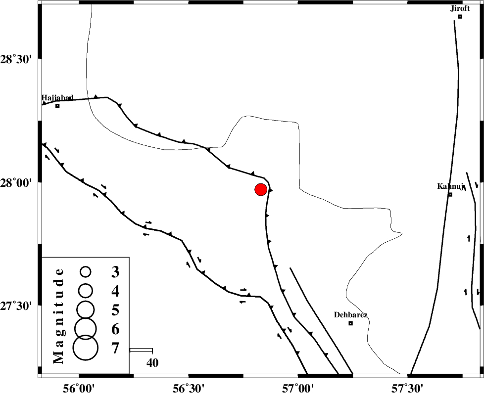 ZENDAN_MINAB_F_Z1 (Length: 183 km) , Distance to epicenter: 38 km | |