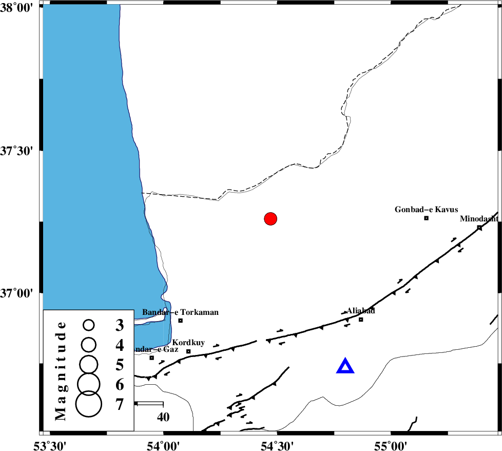 KHAZAR_F (Length: 523 km) , Distance to epicenter: 45 km | |