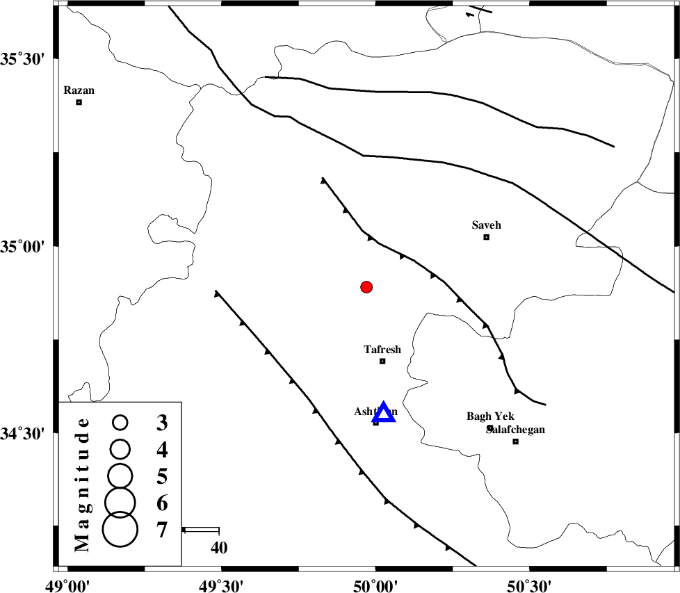 TAFRESH_F (Length: 117 km) , Distance to epicenter: 36 km | |