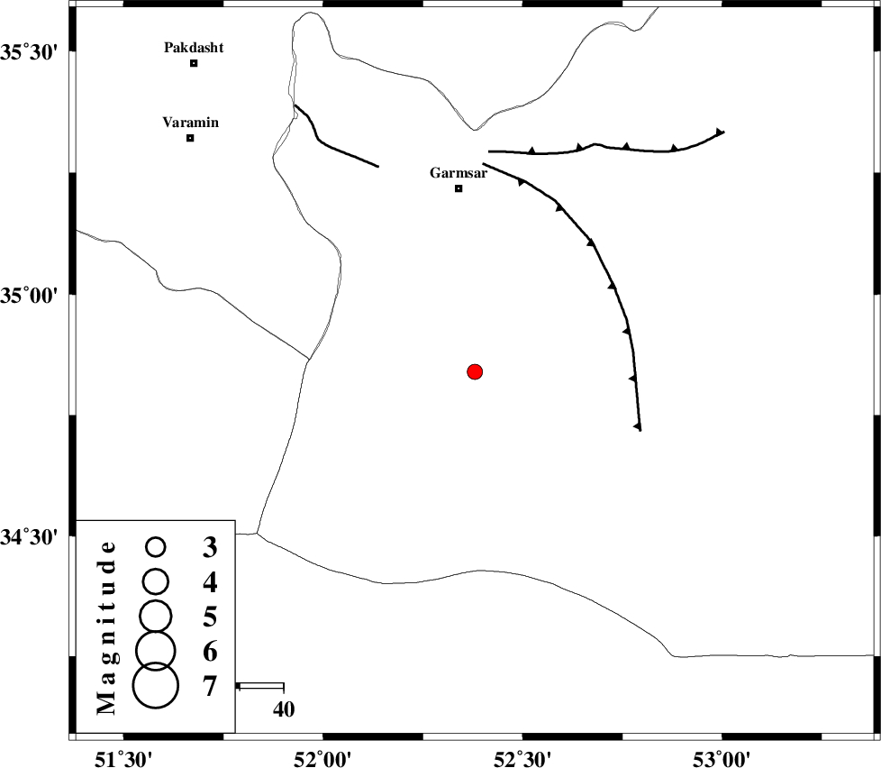 GARMSAR_F (Length: 77 km) , Distance to epicenter: 40 km | |