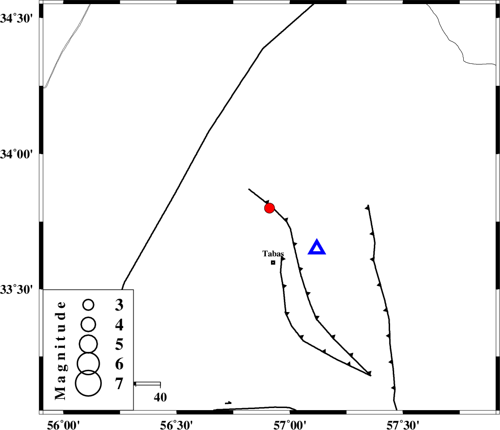 TABAS_F2 (Length: 67 km) , Distance to epicenter: 20 km | |