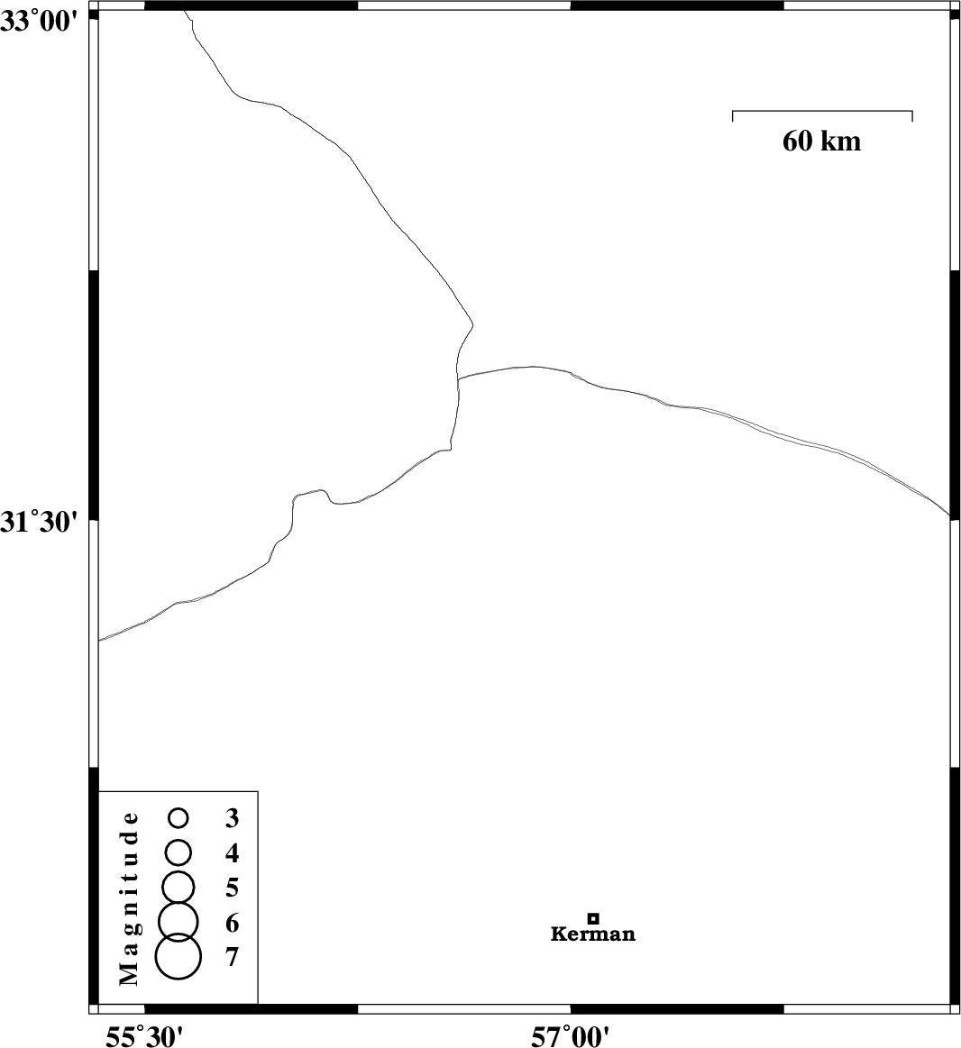 | 2015/07/12 | 14:39:46.8 | 19:09:46.8 | 31.526 | 56.836 | 14 | ML:2.7 | Kerman Province, 29 km North of Ravar |