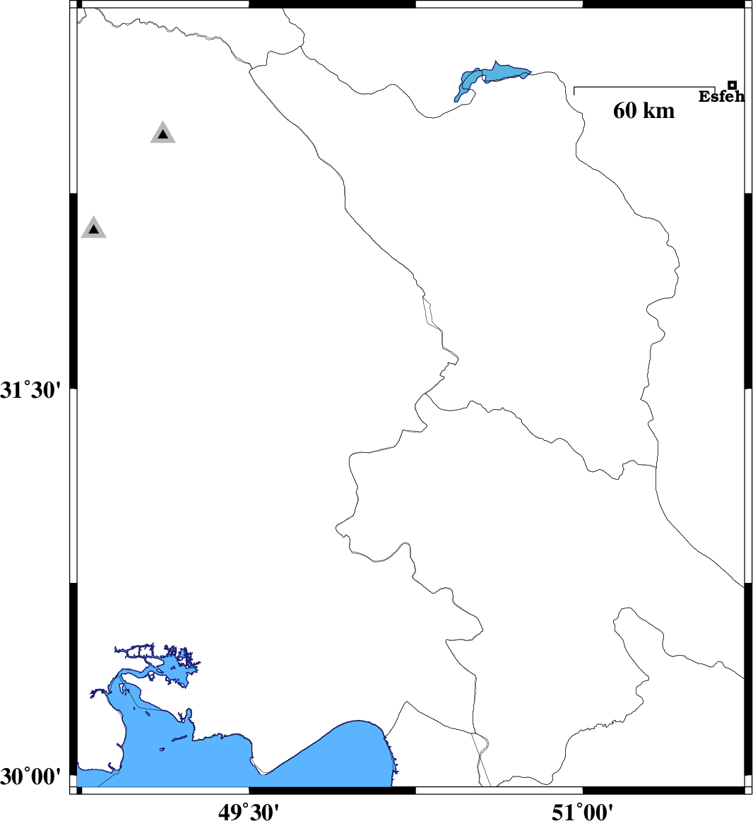 | 2015/07/12 | 17:13:29.8 | 21:43:29.8 | 31.455 | 50.227 | 18 | ML:3.3 | Khoozestan Province, 32 km -East of Bagh Malek |