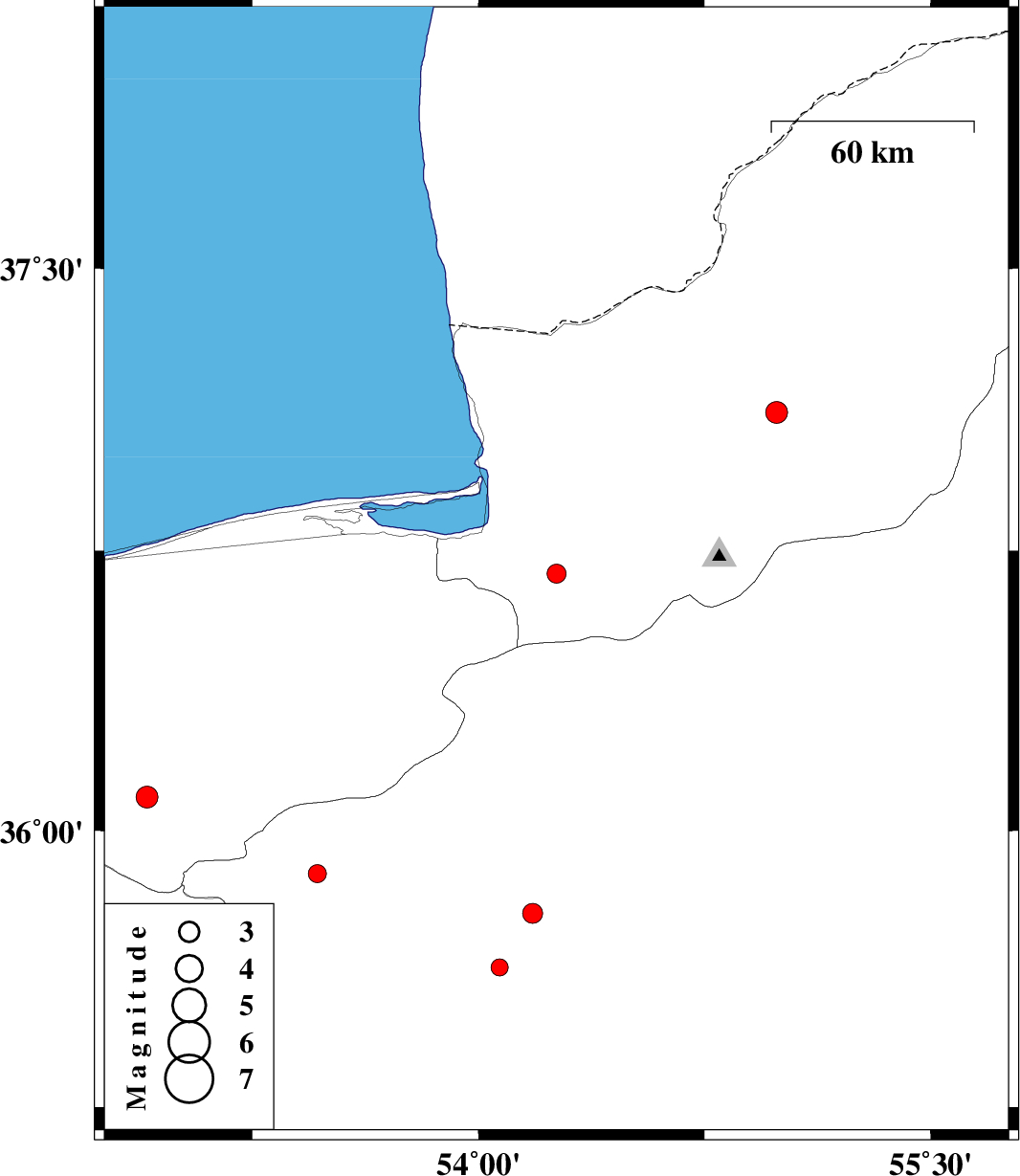 | 2015/07/20 | 17:38:25.7 | 22:08:25.7 | 36.689 | 54.259 | 18 | ML:2.8 | Golestan Province, 18 km South-East of Kordkuy | ||