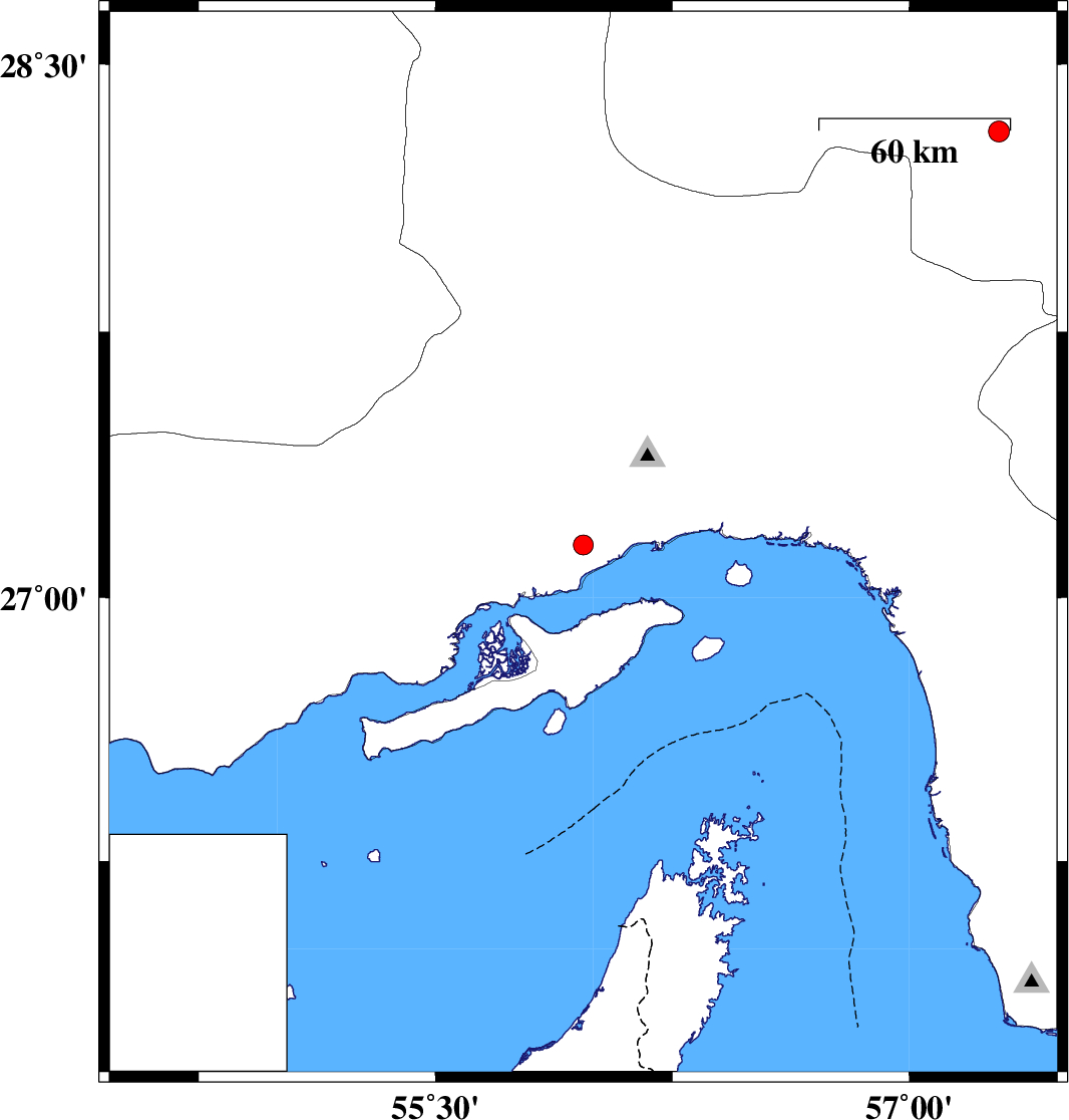 | 2015/07/29 | 05:11:59.0 | 09:41:59.0 | 28.313 | 57.285 | 6 | ML:2.9 | Kerman Province, 57 km North-West of Kahnuj |
