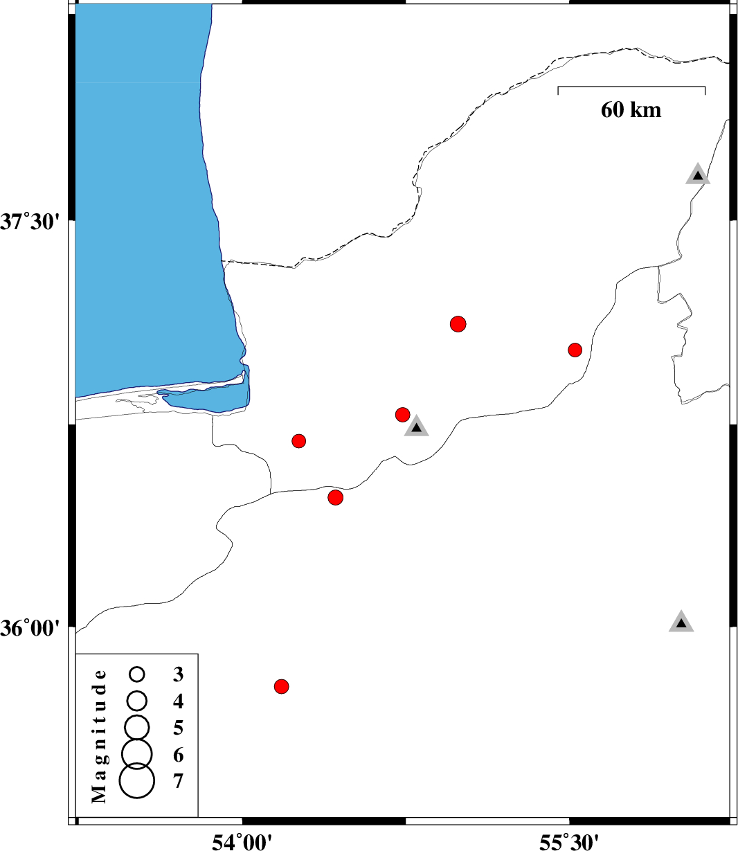 | 2015/08/07 | 05:10:50.6 | 09:40:50.6 | 36.786 | 54.735 | 14 | ML:2.9 | Golestan Province, 18 km South-West of Ali Abad | ||