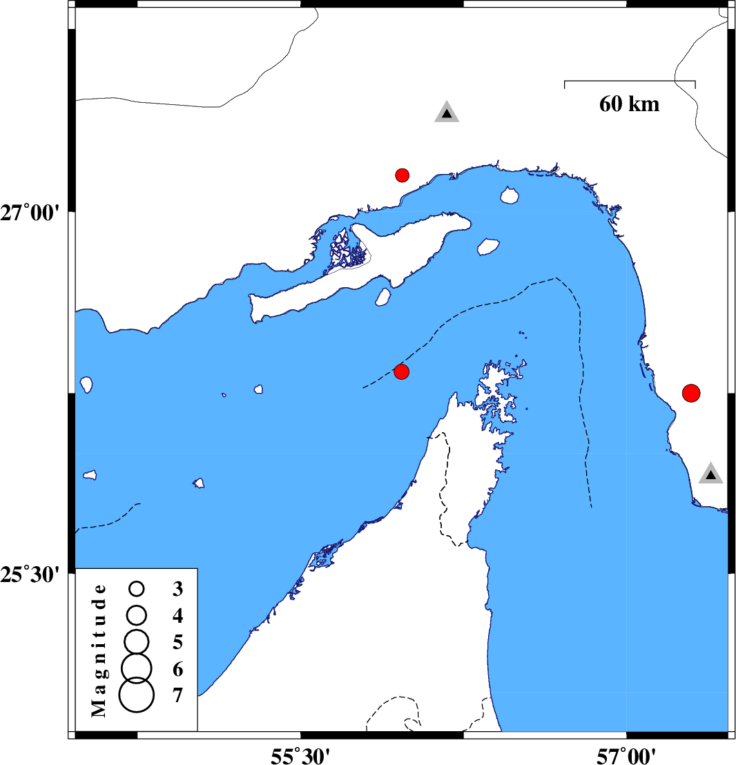 | 2015/08/08 | 22:12:12.5 | 02:42:12.5 | 26.338 | 55.964 | 15 | ML:3.1 | Persian Gulf, 75 km South-West of Qeshm | ||