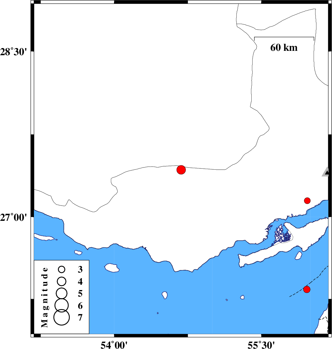 | 2015/08/08 | 22:12:12.5 | 02:42:12.5 | 26.338 | 55.964 | 15 | ML:3.1 | Persian Gulf, 75 km South-West of Qeshm | ||