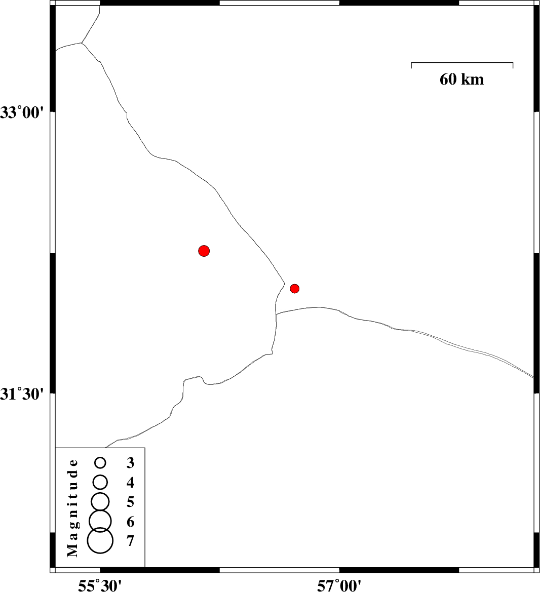 | 2015/08/06 | 07:52:17.5 | 12:22:17.5 | 32.262 | 56.151 | 14 | ML:3.1 | Yazd Province, 102 km North-East of Bafq |