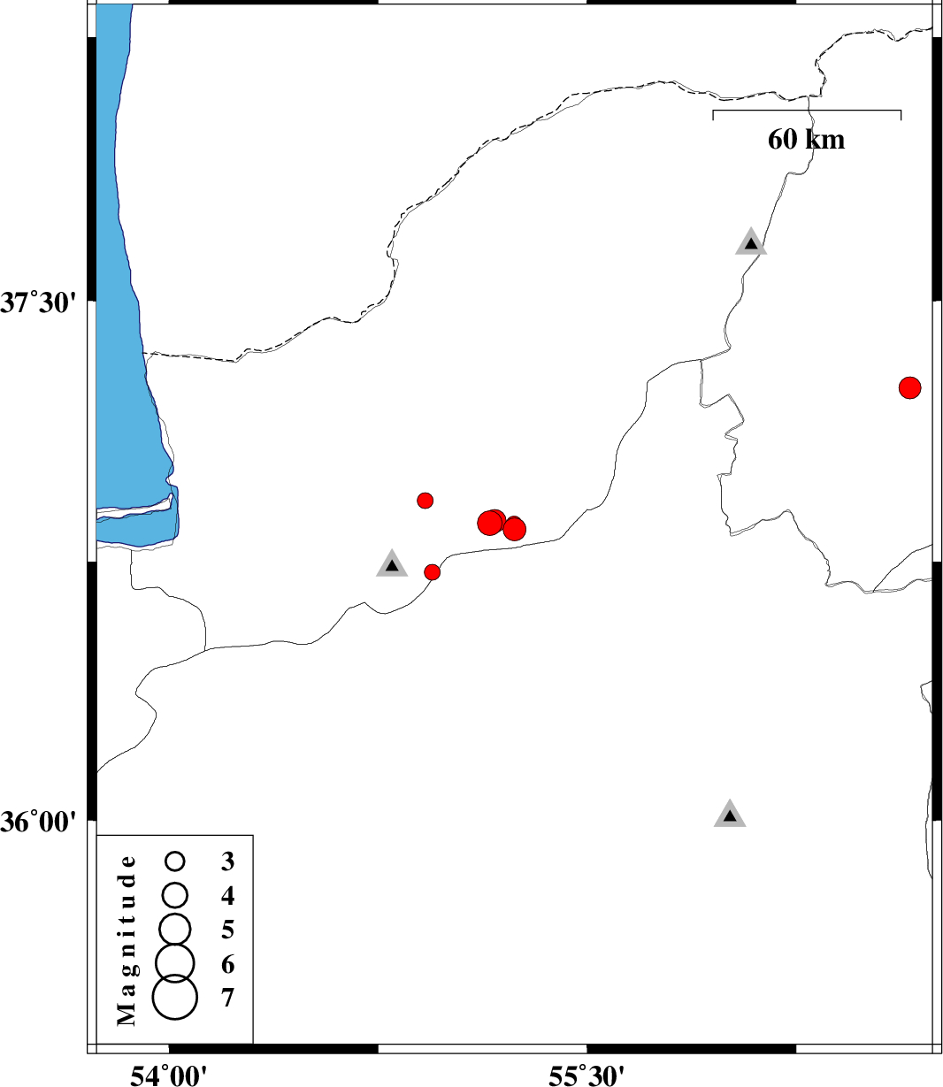 | 2015/08/24 | 17:02:52.3 | 21:32:52.3 | 36.859 | 55.237 | 6 | ML:2.6 | Golestan Province, 19 km South of Ramian | ||