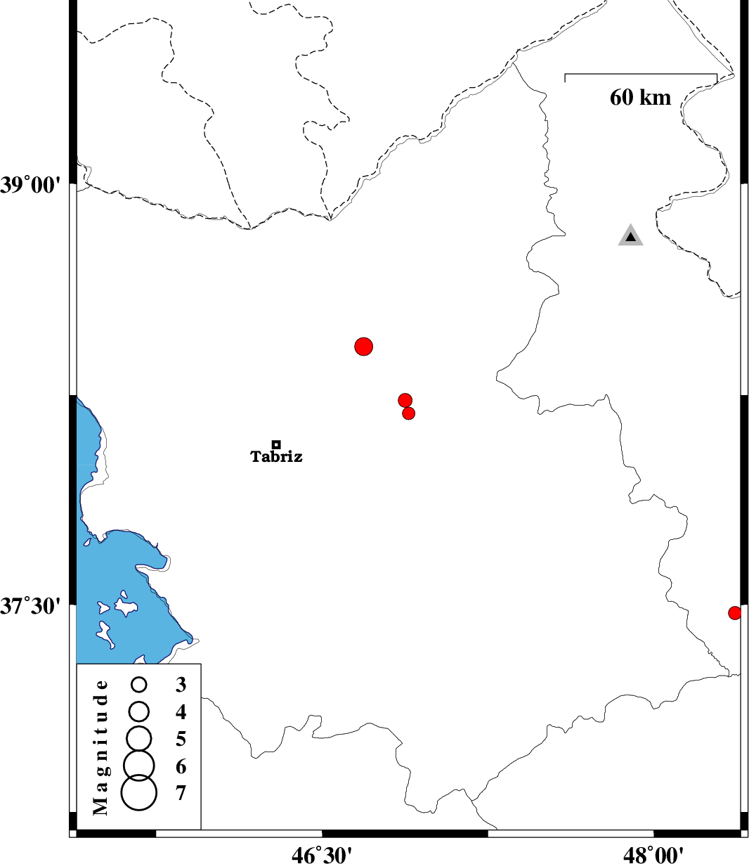 | 2015/08/06 | 20:30:07.9 | 01:00:07.9 | 38.423 | 46.688 | 14 | ML:3.7 | Azarbaijan Sharghi Province, 35 km -West of Ahar |