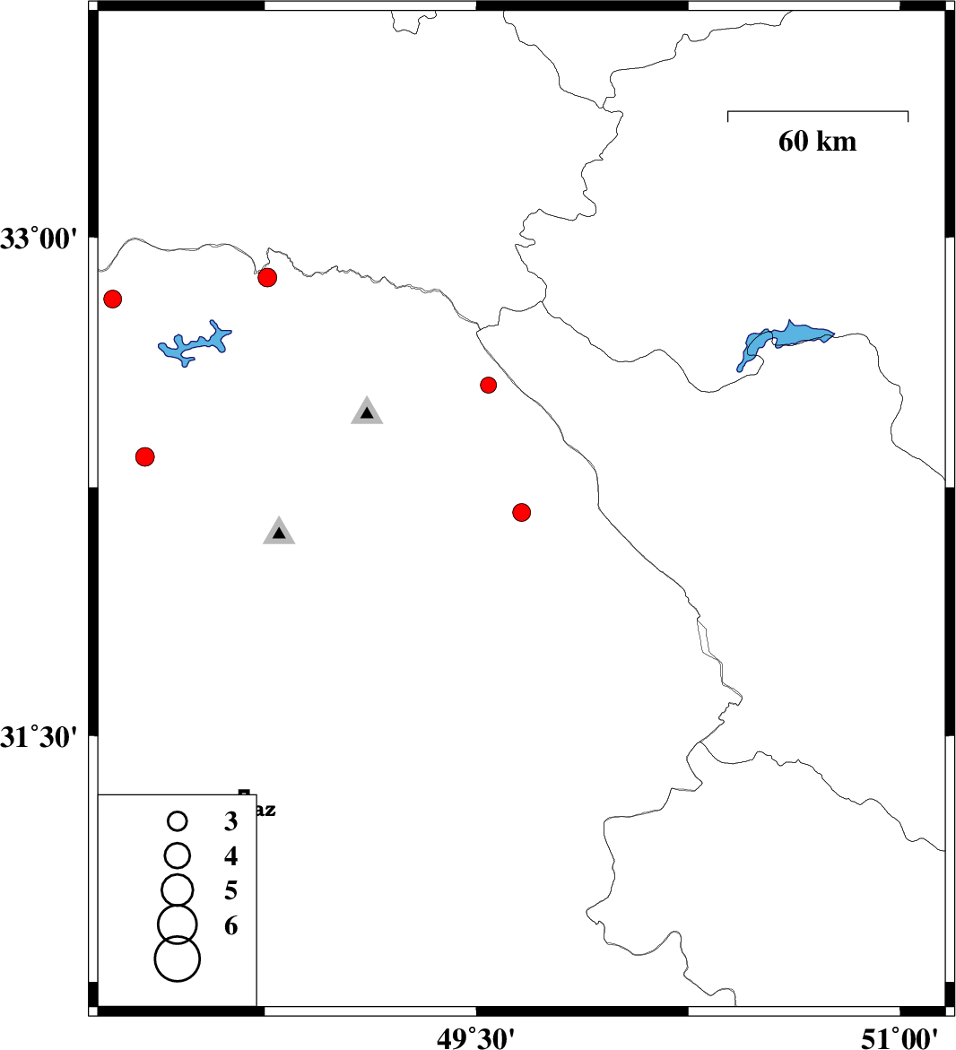 | 2015/08/25 | 16:16:01.3 | 20:46:01.3 | 32.815 | 48.213 | 37 | ML:2.8 | Khoozestan Province, 42 km North-West of Andimeshk | ||