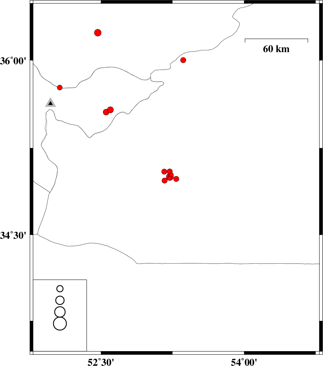 2015/09/05 10:00:20.2 14:30:20.2 34.98353.28915 ML:2.5 Semnan Province, 66 km South-West of Semnan