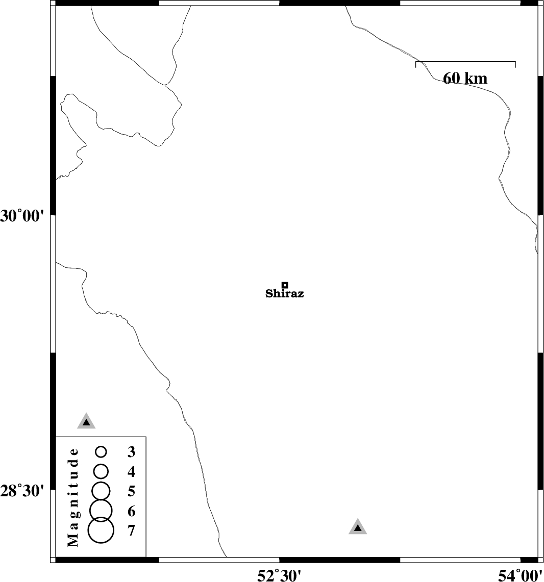 | 2015/09/16 | 02:39:19.2 | 07:09:19.2 | 29.628 | 52.607 | 18 | ML:3.3 | Fars Province, 7 km of Shiraz |