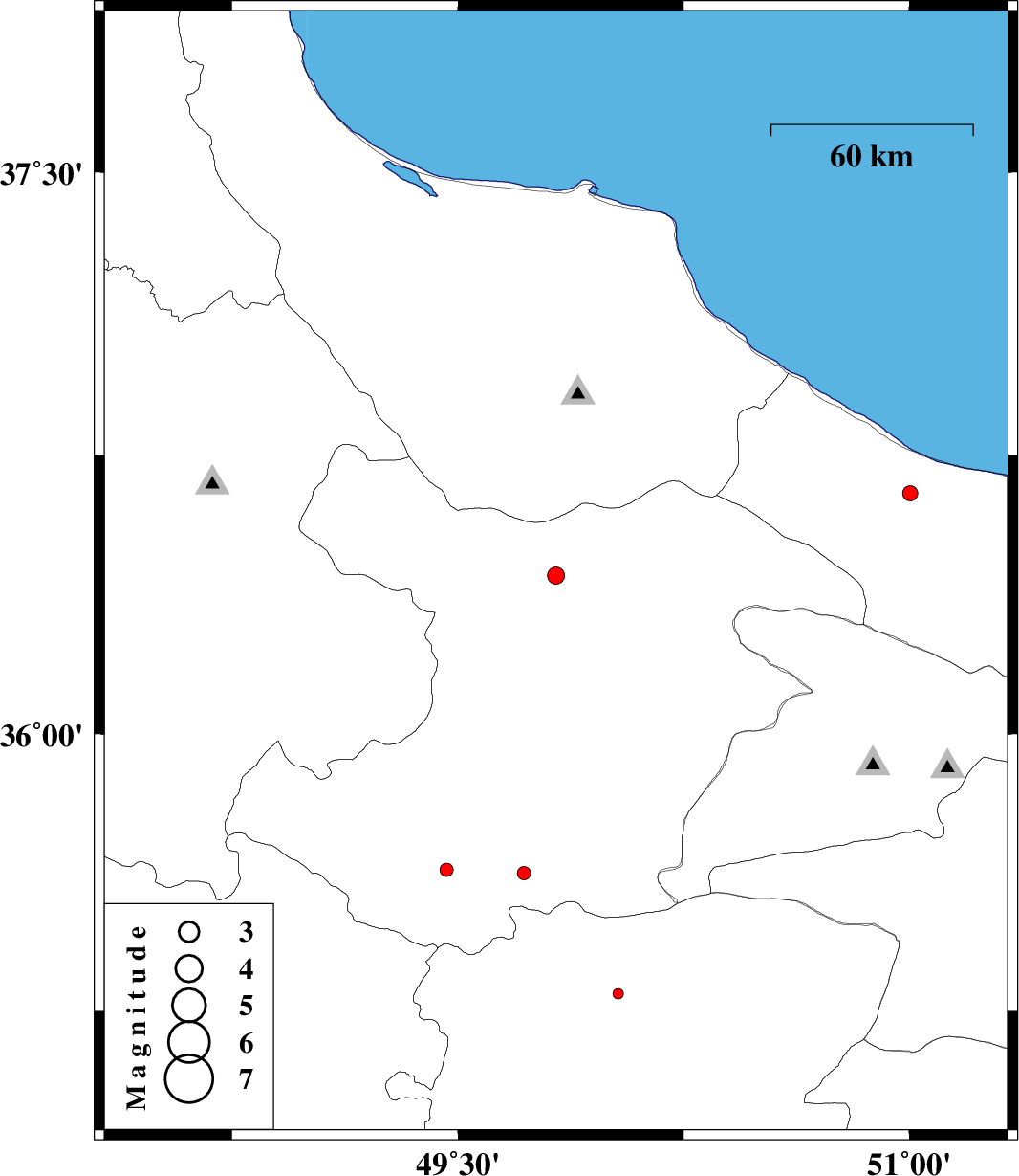 | 2015/09/19 | 23:00:11.8 | 03:30:11.8 | 36.646 | 51.002 | 6 | ML:2.3 | Mazandaran Province, 21 km South-East of Tonekabon | ||