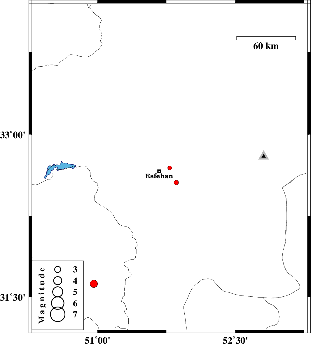 | 2015/09/26 | 06:27:26.6 | 09:57:26.6 | 32.693 | 51.786 | 15 | ML:2 | Esfahan Province, 11 km -East of Esfahan | ||