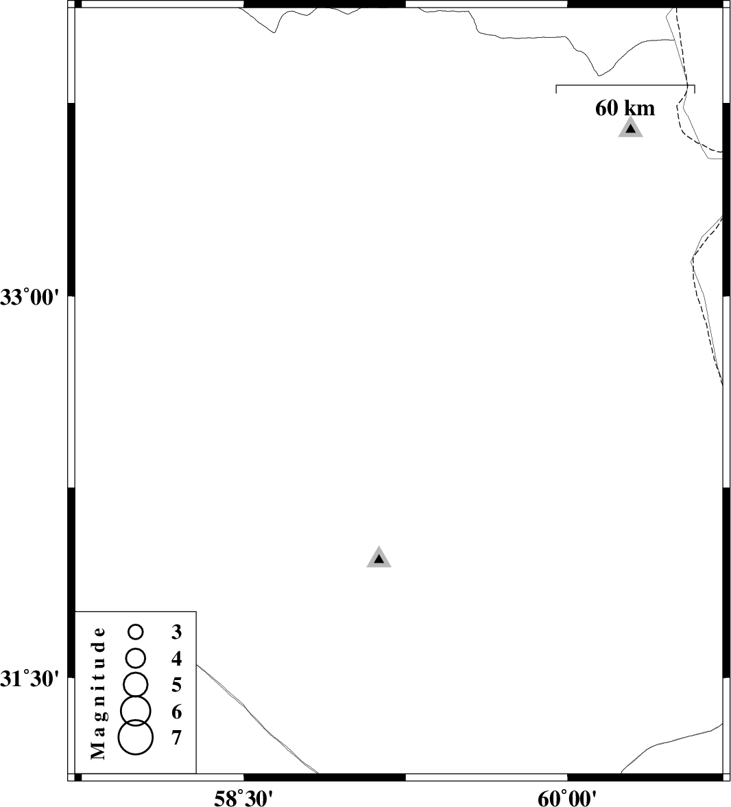 | 2015/09/26 | 17:46:52.0 | 21:16:52.0 | 32.618 | 59.218 | 17 | ML:1.9 | Khorasan(south) Province, 31 km South of Birjand |