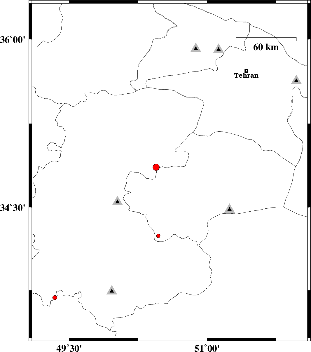 | 2015/09/21 | 09:00:50.3 | 13:30:50.3 | 35.784 | 51.952 | 15 | ML:3.2 | Tehran Province, 13 km -West of Damavand |